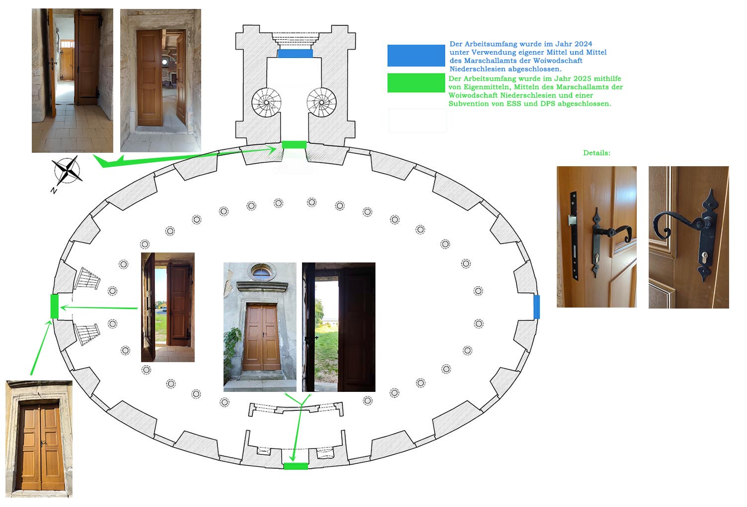- Fachliche Betreuung bei Denkmaleigentümer und Bauherr (Bauinspektor): Architekt Krzysztof Wartenberg