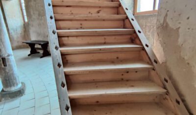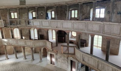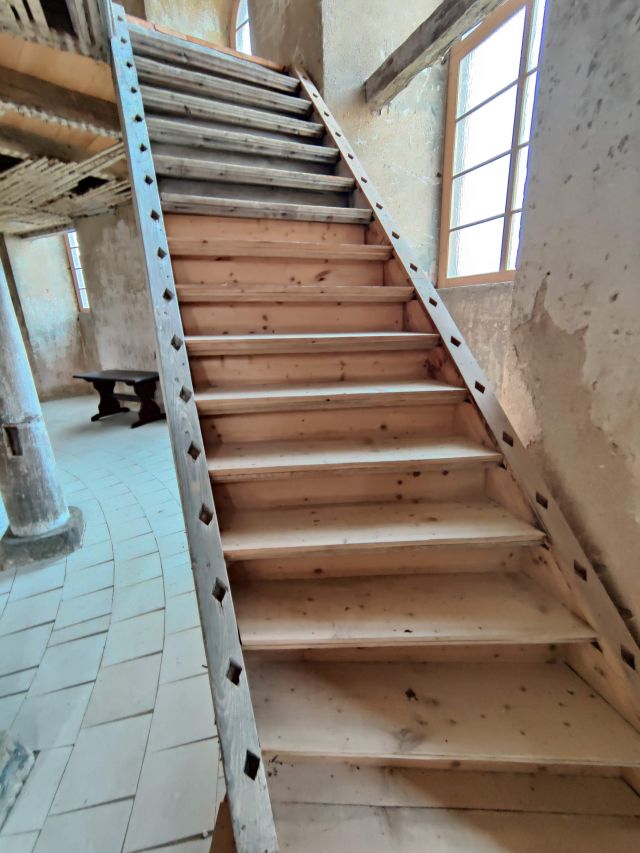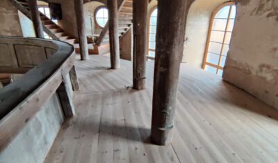 Daher soll ja zuerst auf der Empore gegenüber der Kanzelseite (in der ehem. Patronatsloge) ein abgesicherter Bereich mit Turmtreppenzugang geschaffen werden. Von diesem abgesicherten Emporenteil sollen Besucher in die Kirchenbaustelle schauen können, die voraussichtlich bis 2022 bestehen wird. Und es sollen in der ehem. Patronatsloge und im Übergang zu dieser für die Besucher Ausstellungstafeln präsentiert werden, die die Geschichte der Kirche, ihren früheren und jetzigen Bauzustand sowie die zukünftige Gestaltung und Nutzung dokumentieren.