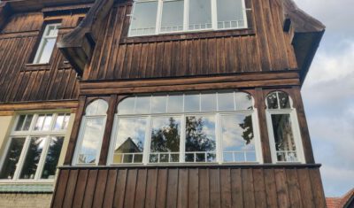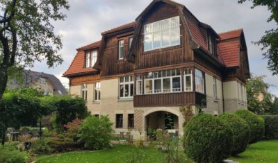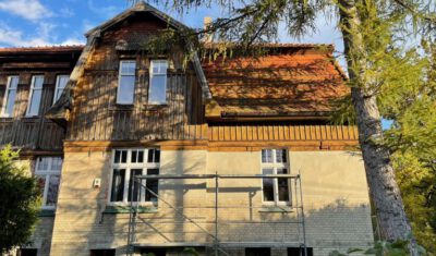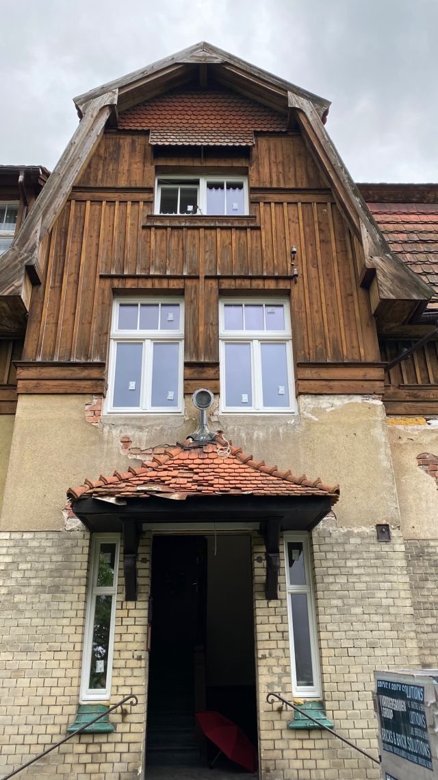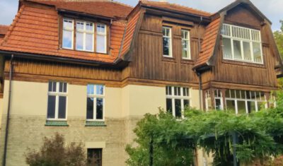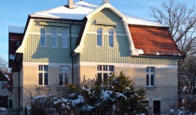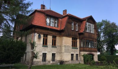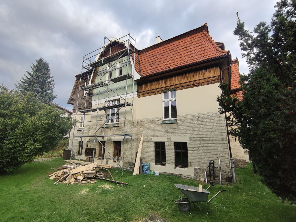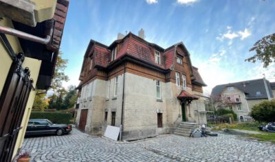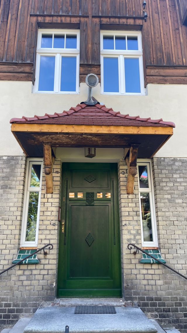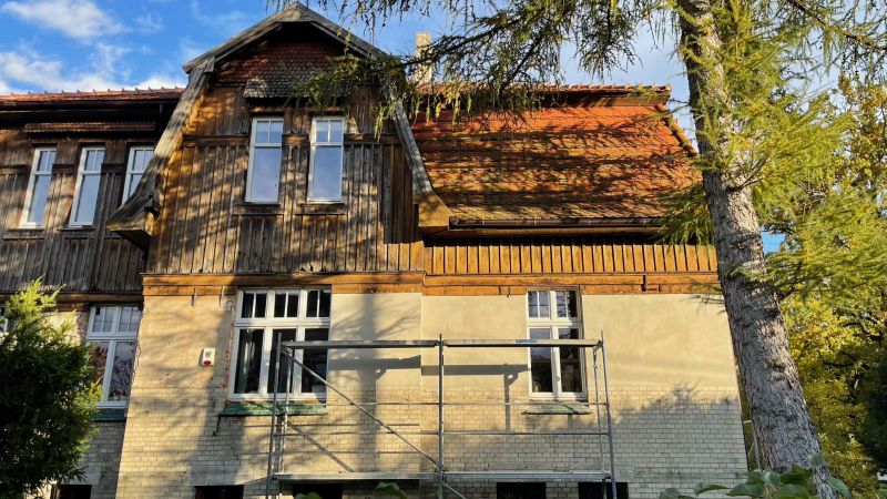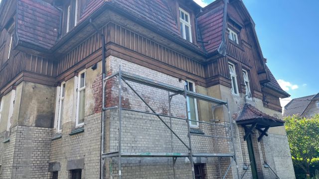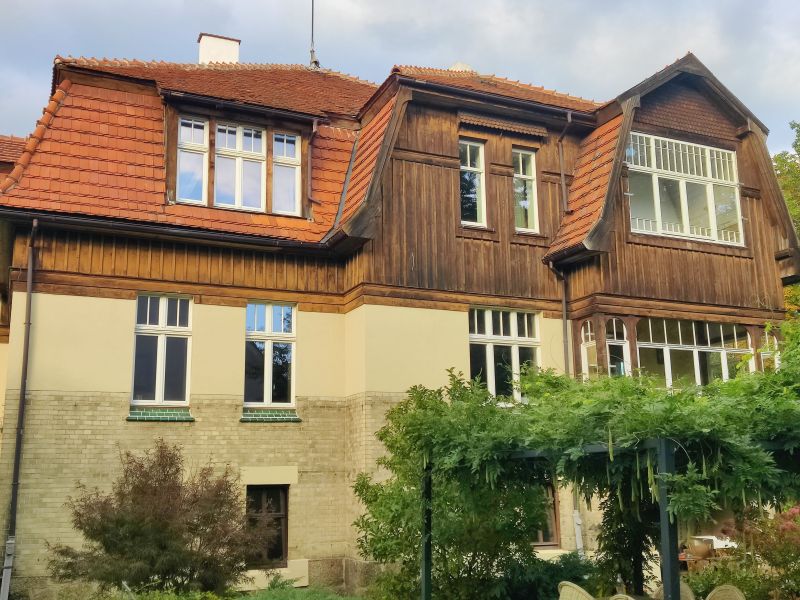 Als es schließlich um die wichtige Wiederherstellung der Farbigkeit der Außenfassade ging, kam der Eigentümer 2024 auf die Deutsch-Polnische Stiftung Kulturpflege und Denkmalschutz (DPS) mit der Bitte um finanzielle Unterstützung zur Realisierung dieser Maßnahme zu. Für so viel Initiative, wie sie vom Eigentümer an den Tag gelegt wurde, kann man nur dankbar sein, so dass die Stiftung ihre Unterstützung zusagte. Förderbedingung war allerdings die Eintragung der Landhausvilla als Einzeldenkmal in das Denkmalregister und anschließend die Einholung der denkmalrechtlichen Genehmigung für die Wiederherstellung der Fassadenpolychromie gewesen.
