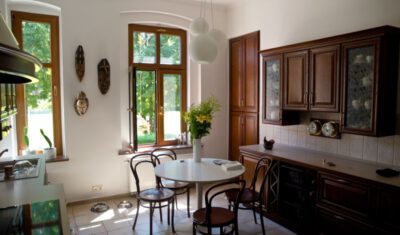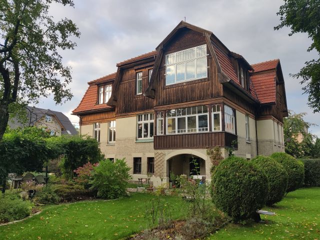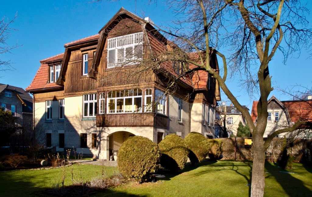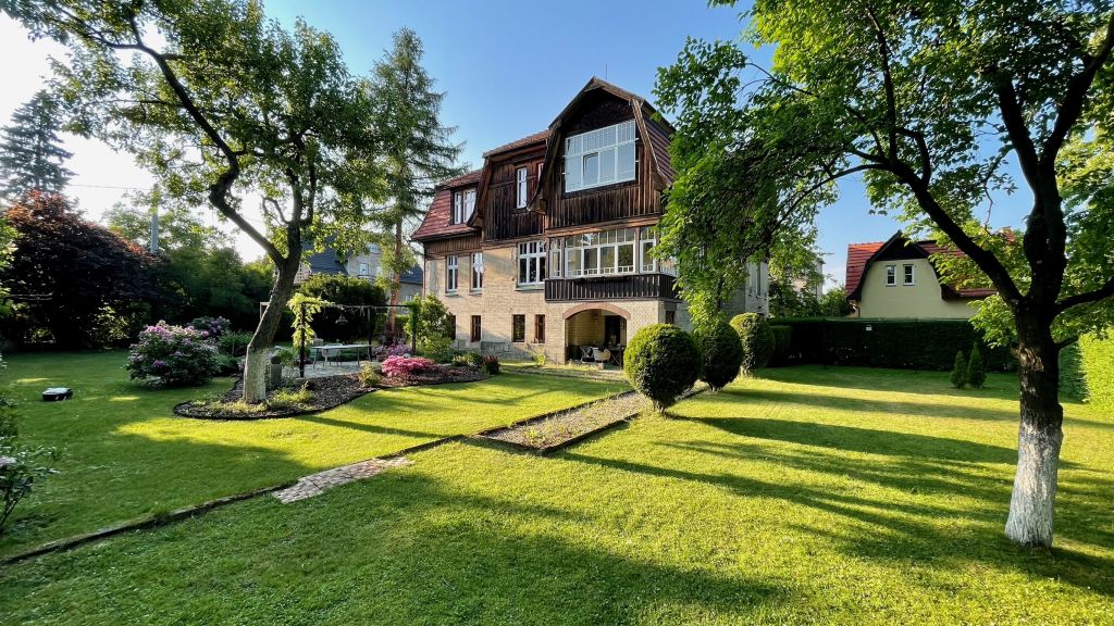 Das zwischen 1912 und 1914 entstandene Landhaus in der ehem. Wrangelstraße 16, heute ul. Kazimierza Pulaskiego 16 ist ein vollständig erhaltenes und typisches Beispiel der zur Zeit seiner Errichtung entwickelten „Heimatschutz“-Bewegung. Es ist das letzte ungeteilte und vollständig erhaltene Gesamtensemble inkl. Wirtschaftsgebäude und samt Parzelle in Bad Warmbrunn (Cieplice Śląskie-Zdrój). Seine Architektur entspricht dem regional geprägten historistischen Landhaustypus mit asymmetrischem Grundriss, horizontal gegliederter Fassade, Mansarddächern, Holzverschalungen und farbig gestalteten Ornamenten. Alle Bodenbeläge, die wandfeste Ausstattung, sowie die Türen und Beschläge sind noch original erhalten, eine Seltenheit in Polen!