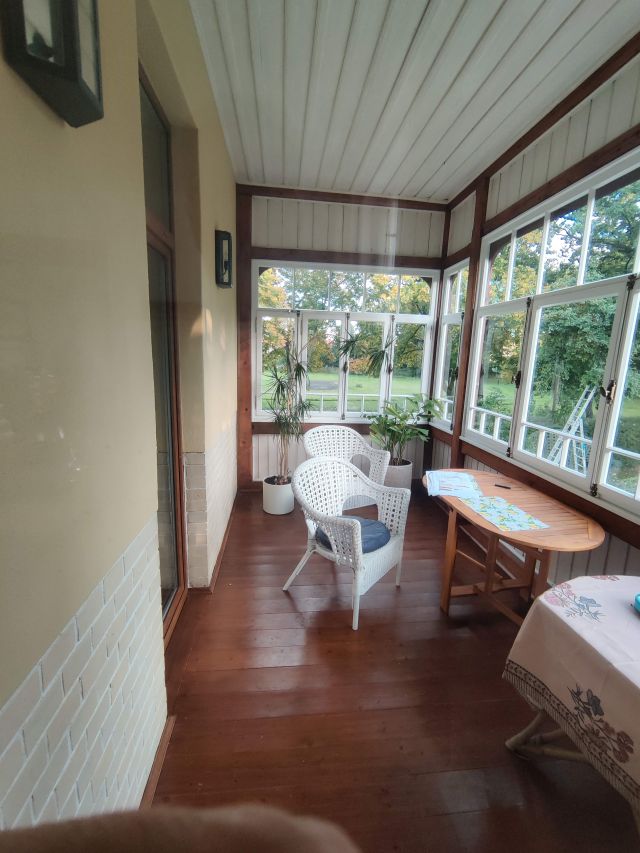 An der östlichen Ecke der Südfassade wurde die zweigeschossige, geschlossene Veranda angeordnet. An der Nord- und Ostfassade sind die Lüftungsschächte erhalten. Sie wurden mit einem aufwändig gestalteten Lüftungsgitter verkleidet.