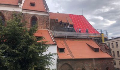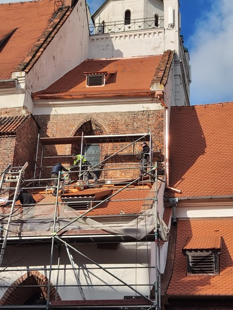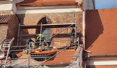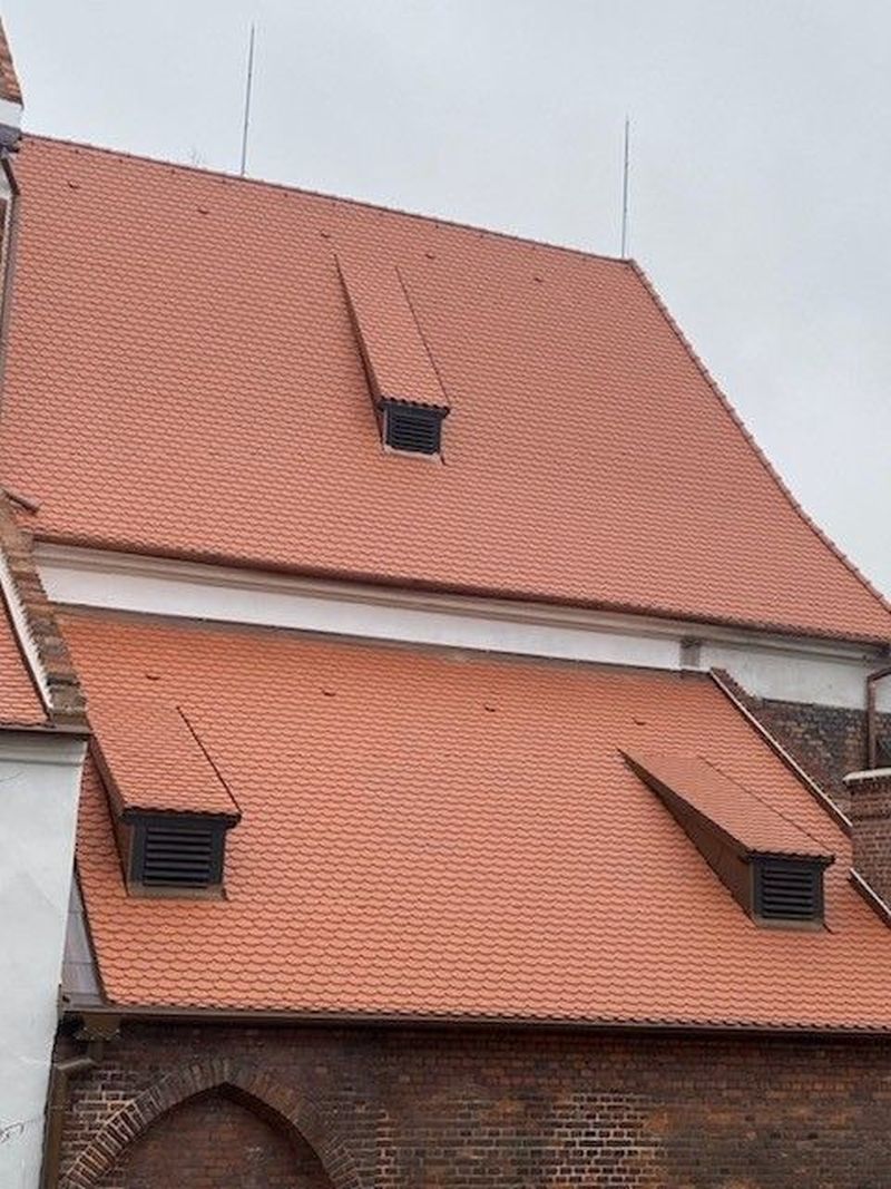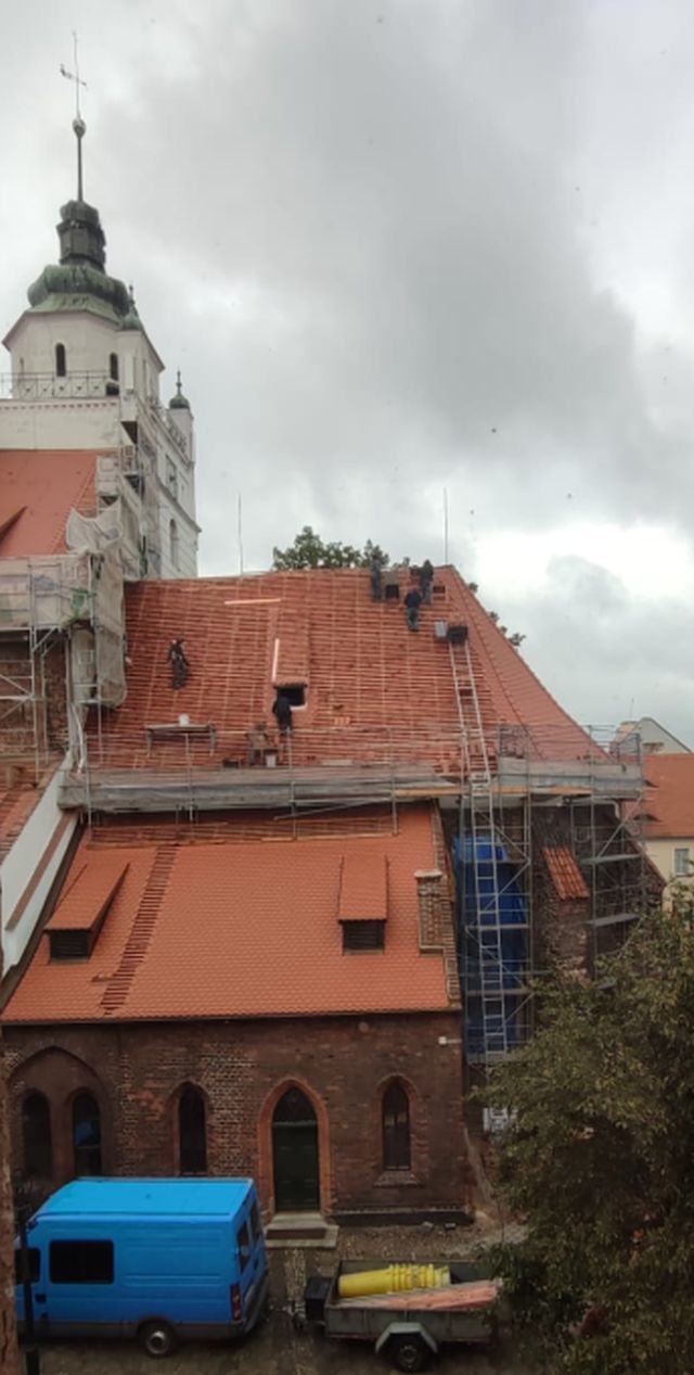 Vor 23 Jahren wurden die Kirchendächer mit neuen Ziegeln bedeckt. Leider stellte sich nach mehreren Reparaturen am Dach heraus, dass die damals verlegten Dachziegel von sehr schlechter Qualität waren, Risse aufwiesen und abbröckelten. Die gleichen Ziegel (von demselben Hersteller) wurden auf dem Dach des Wawel in Krakau und auf dem Dach des Schlosses (heutiges Stadtmuseum) in Kluczbork (Kreuzburg) verlegt. Nach der Qualitätsprüfung der Dachziegel wurden auf beiden vorgenannten Gebäuden die Dächer komplett mit neuen Ziegeln eingedeckt; auf dem Wawel vor ein paar Jahren; auf dem Kreuzburger Schloss vor 3 Jahren. Leider ist der Hersteller der genannten Ziegel von schlechter Qualität in Konkurs gegangen, und die Kirchengemeinde konnte keine Schadensersatzansprüche geltend machen.