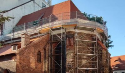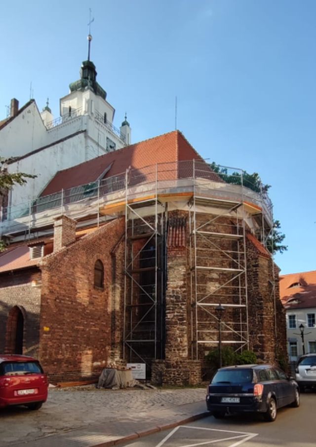 Aus finanziellen Gründen, kann dieses Maßnahmenprogramm nur weiter in Teilbauabschnitten realisiert werden. 2025 wurde es dank erneuter Unterstützung der Deutsch-Polnischen Stiftung Kulturpflege und Denkmalschutz möglich, das dreiseitig geschlossene Satteldach des Presbyteriums (Chors) vollständig zu bearbeiten.