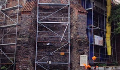– Wiedereinmauerung der Giebelwandabschlüsse,
