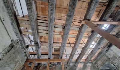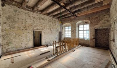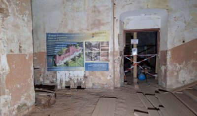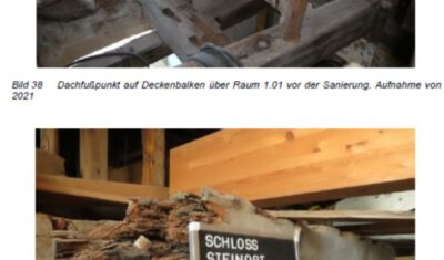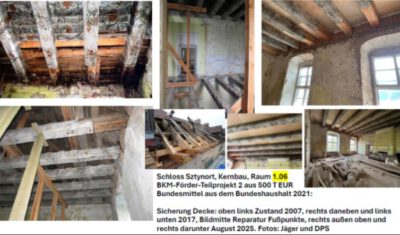 Weitere finanzielle Unterstützung für das Projekt Schloss Steinort ist also notwendig, um den erreichten Bauzustand zu stabilisieren und die Sicherung der historischen Bausubstanz weiter voranzubringen. Immerhin konnten bislang acht der wertvollen, überwiegend polychrom bemalten historischen Holzbalkendecken, die heute einzigartig in der masurischen Kulturlandschaft sind, durchrepariert und somit gerettet werden.