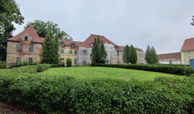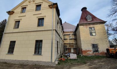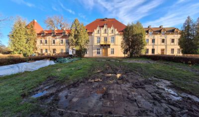 Im April 2020 wurde von der Schwesterstiftung PNF mit tatkräftiger finanzieller Unterstützung der DPS hoffnungsvoll ein Antrag an das Polnische Ministerium für das Nationalerbe auf Förderung aus dem sog. Island-Liechtenstein-Norwegen-Fonds zur Sanierung und Revitalisierung des Westflügels als Bildungsreinrichtung (Schwerpunkt Handwerkerfortbildung und Kultur) mit Seminarräumen und Werkstatt (Kostenvolumen 2,877 Mio EUR) eingereicht. Dieser sehr umfangreiche Antrag, untersetzt mit kompletter Baugenehmigungsplanung für den Westflügel hat dann leider im Dezember 2020 (wegen 2 Punkten, die zu wenig erreicht wurden) eine Absage erhalten.