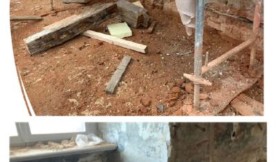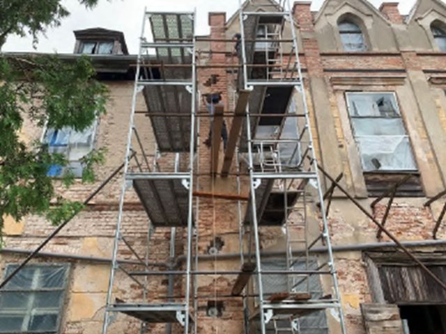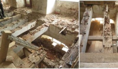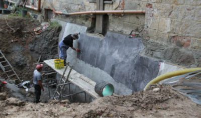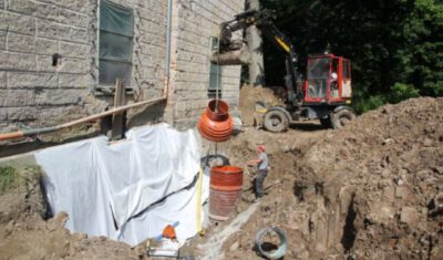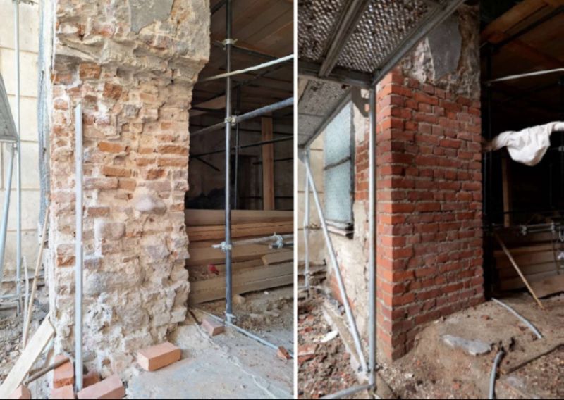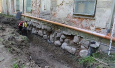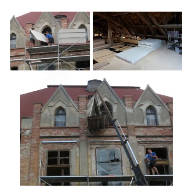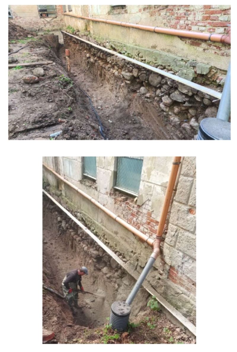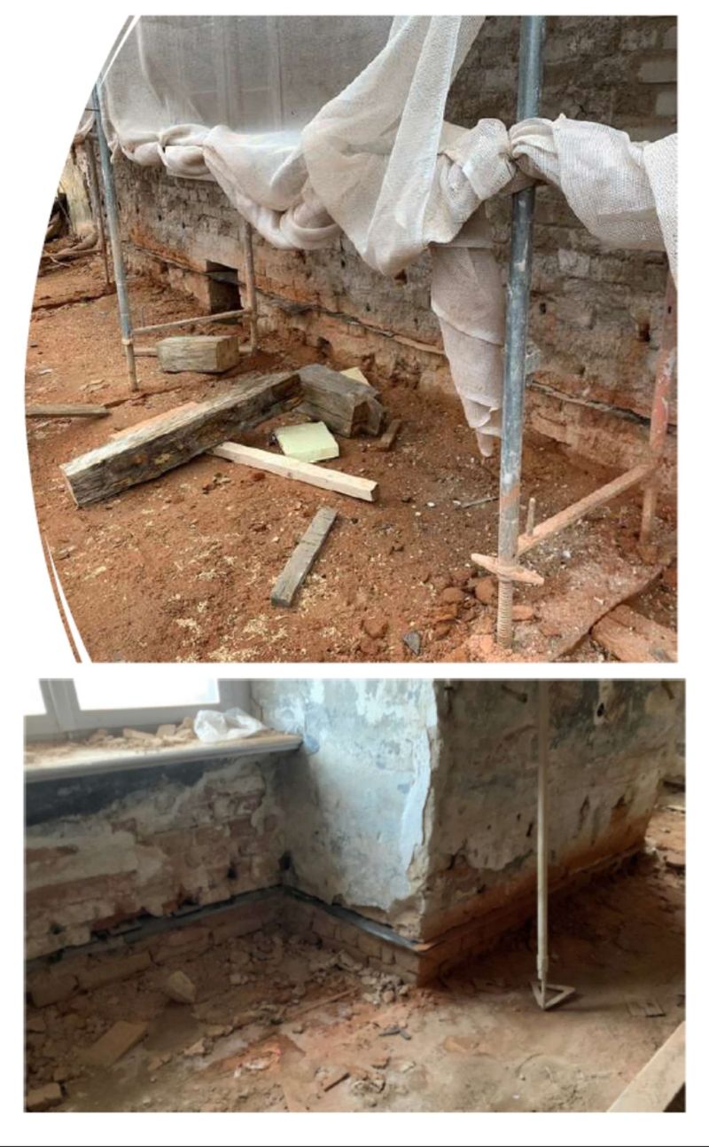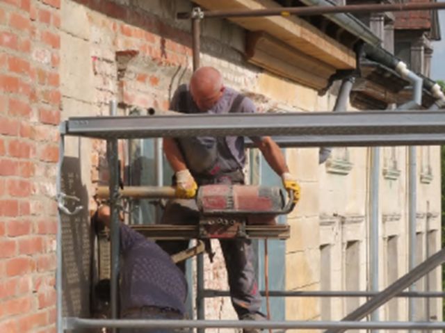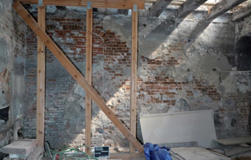 - Ausführender Baubetrieb 6. Sicherungsmaßnahme (2014 – Tiefbauarbeiten), 7. Sicherungsmaßnahme (2015 – Tiefbauarbeiten) ), 8. Sicherungsmaßnahmen 2019/20, 9. Sicherungsmaßnahmen 2020/21 (Gerüstbau, Winterfestmachung, Fundamente, Drainage, Horizontalsperre, Abbruch- und Sicherungsarbeiten u.a.), 10. Sicherungsmaßnahmen 2022/23 (u.a. restliche Drainage- und Abdichtungsarbeiten, Einbringung bearbeitete Deckenbalken Raäume EG 0.09 und OG 1.06): u.a. Fa. Budowlana „Hohlbud“, 11-610 Pozezdre