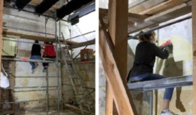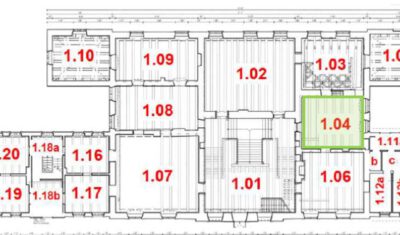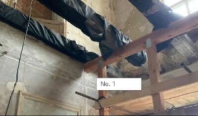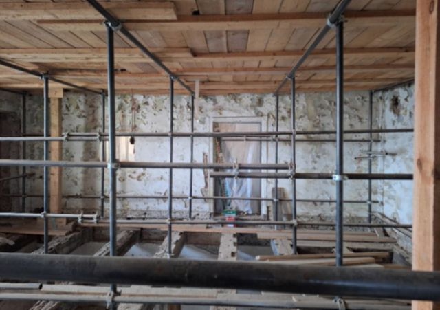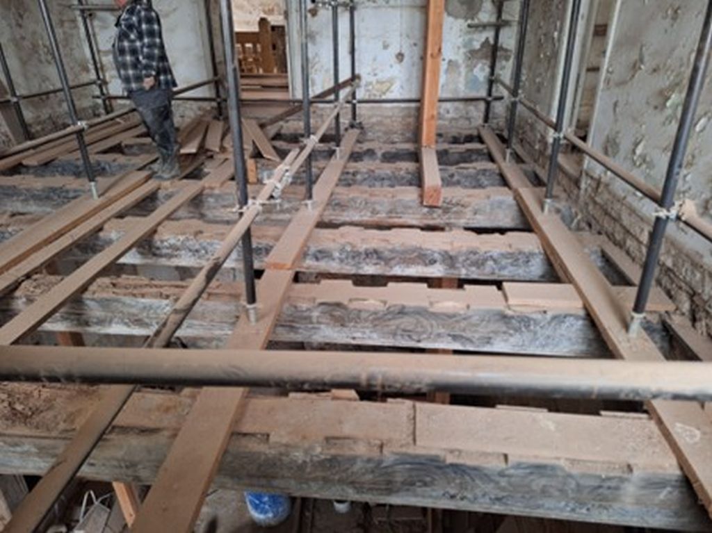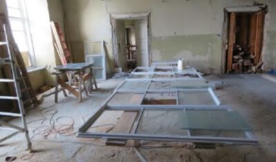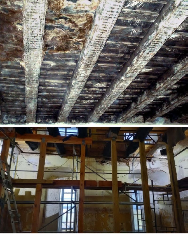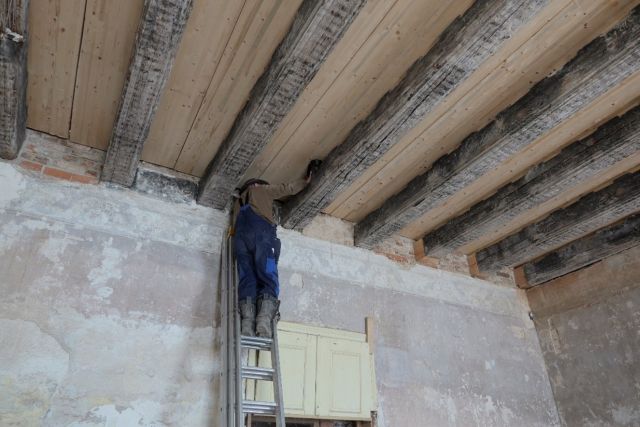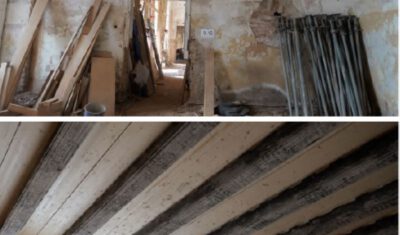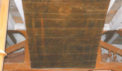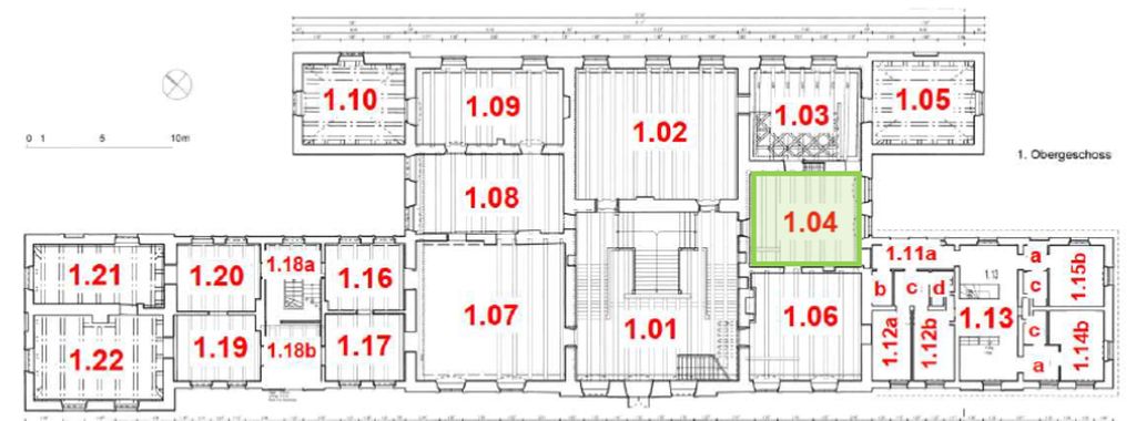 Decke über Raum 1.04 (als Voraussetzung für die darunter liegende Decke über Raum 0.08, in der folgenden Förderperiode)