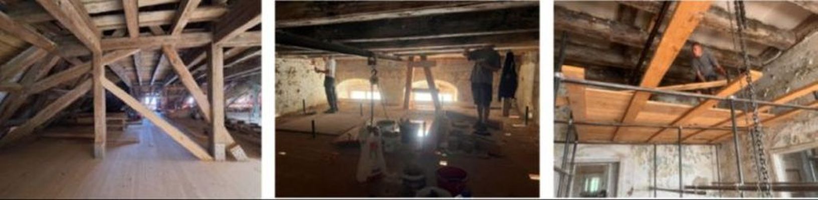 An begleitenden Maßnahmen vorgesehen: das Schließen der Türen zu den Räumen, in denen die Decken gesichert wurden, Erweiterung der Heizung für die Räume mit neu gesicherten Decken, die Dämmung der Heizleitungen, laufende Instandhaltungen der bisher realisierten Maßnahmen.