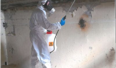Da im Denkmal dem Abbruch Grenzen gesetzt sind, muss ein Absperren mit einem Schwammmittel, das für geschlossene Wohn- und Arbeitsräume zugelassen ist, erfolgen. Dennoch bleibt – auch wegen der überall vorhandene Sporen – die Gefahr des Wieder-Aufflammens, sobald günstige Wachstumsbedingungen vorhanden sind. Aus diesem Grund sollte möglichst zeitnah in den Räumen, die geschlossen werden, ein akzeptables Raumklima hergestellt werden, was ein Wiederaufflammen des Hausschwamms verhindert. Es ist zu erwähnen, dass der Hausschwamm – auch wenn er keine Feuchtigkeit vorfindet – durch Ausscheiden von Enzymen beim Zusammentreffen mit organischem Material und optimalen Wachstumsbedingungen sich weiter fortentwickelt. Insofern besteht akuter Handlungsbedarf, um die noch vorhandenen polychrom bemalten Deckenbalken zu retten. Mit der Pappdeckung des Daches konnte 2011 das akute Wachstum gestoppt werden, der schleichende Fortbestand bleibt aber bestehen, bis die Dächer saniert, die Fenster geschlossen und alle wichtigen Innenräume deckengesichert, horizontal abgedichtet und temperiert sind..