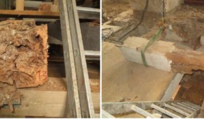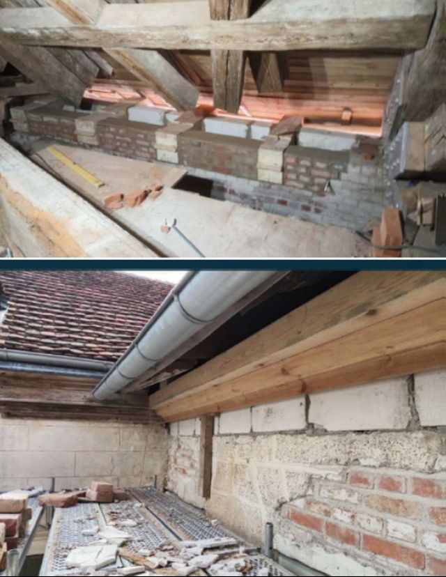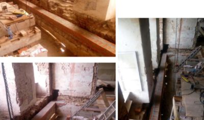 - Herstellung eines ausreichend tragfähigen Balkenauflagers (Carbon-Mauerwerk, Vermeidung von Stahlbeton)