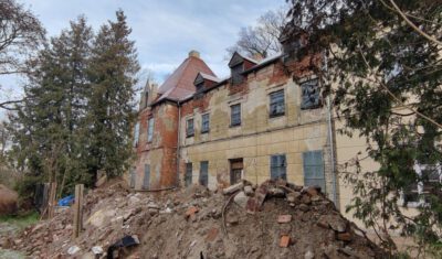 Am Herrenhaus Steinort sind kontinuierlich Sicherungsmaßnahmen fortzuführen, um den in den letzten Jahren dank privater Spenden und Mitteln der öffentlichen Hand erreichten gebotenen Sicherungszustand halten und ausbauen zu können. Nicht alle anfallenden Kosten können mit Bundesmitteln abgedeckt werden. So reihen sich die Bewilligungszeiträume für die von der DPS gestellten Anträge auf Bundeszuwendungen nicht nahtlos aneinander, d.h. es gibt Leistungen, die zeitlich keinen Aufschub zulassen, so dass diese in einen Zeitraum fallen, für den noch keine Bundesmittel bewilligt sind. Dann müssen diese Leistungen mit Eigenmitteln finanziert werden. Dafür werden dringend weitere Spenden benötigt! Außerdem sind da z.B. die ausgelagerten originalen barocken bemalten Deckenbretter aus dem Schloss, die 2016 an einen sicheren Platz in der näheren Umgebung von Steinort umgelagert worden sind und die in ein saniertes Schloss wieder eingebaut werden sollen. Für deren Bewahrung ist eine monatliche Lagermiete zu zahlen. Auch dazu ist die Polnische Deutsche Stiftung Polsko-Niemiecka Fundacja Ochrony Zabytków Kultury (PNF) weiterhin auf Spenden ihrer deutschen Schwesterstiftung DPS angewiesen. Und je größer die Baumaßnahmen werden, desto höher sind die laufenden und flankierende Kosten, wofür stets mindestens ein Eigenmittelanteil benötigt wird. Somit bitten wir Sie vielmals darum, durch Spenden an die DPS die Erhaltung von Schloss Steinort nach besten Kräften zu unterstützen. Jeder Betrag ist willkommen! Zuwendungsbestätigungen stellt die Deutsch-Polnische Stiftung Kulturpflege und Denkmalschutz (DPS) gerne aus. Steinort-Spendenkonto: IBAN DE80 8707 0024 0823 3660 00, BIC/SWIFT DEUTDEDBCHE – Kennwort: Schloss Steinort – Deutsche Bank AG Filiale Görlitz