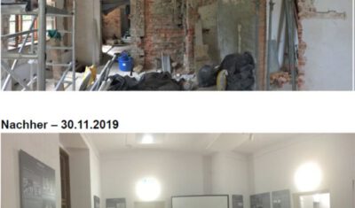Und es entstand im Herbst 2019 im Ostflügel von Schloss Steinort ein kleines Ausstellungs- und Informationszentrum als Anlaufstelle für die im Sommer zahlreichen Steinort-Besucher.