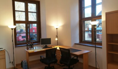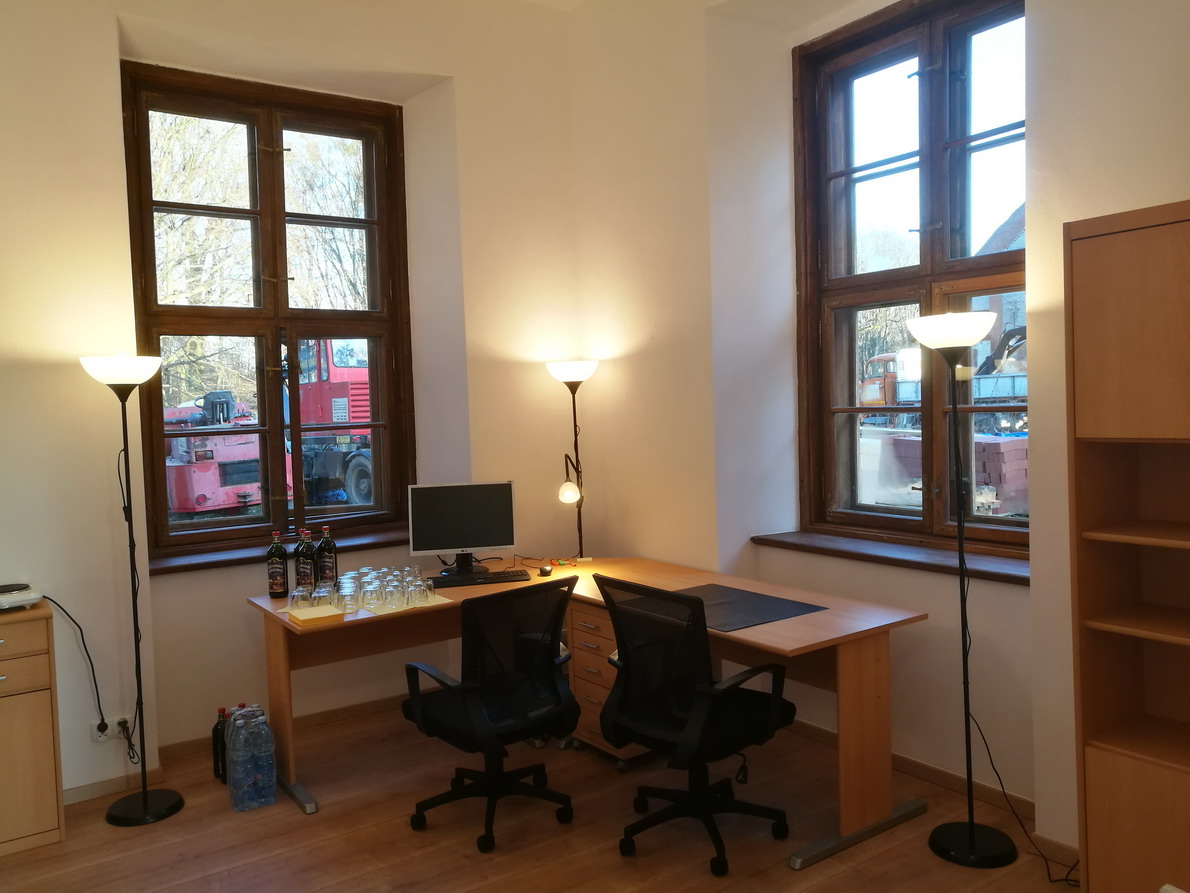 Um die klimatischen Verhältnisse in den Räumen, wo die Decken statisch gerettet sind, anzupassen, ist eine Heizungsanlage erforderlich (betrifft Räume 0.01, 0.09 und 0.10 mit Ausführung 2026). Es ist hier eine Wärmepumpenheizung vorgesehen, die modular aufgebaut sein wird. Zuerst wird ein erstes Modul einer Luft-Wärmepumpenanlage installiert, die die Räume mit den statisch gesicherten Decken versorgen soll. In der jetzigen Kalkulation sind entsprechende Radiatoren, die für die Niedertemperatur geeignet sind, als Lösung anvisiert. Ggf. kann bereits auch eine Fußbodenheizung im EG und Heizungsflächen im OG vorgesehen werden. Die Lösung ist später anpassbar, sodass keine Ausgaben gemacht werden, die später verloren wären.