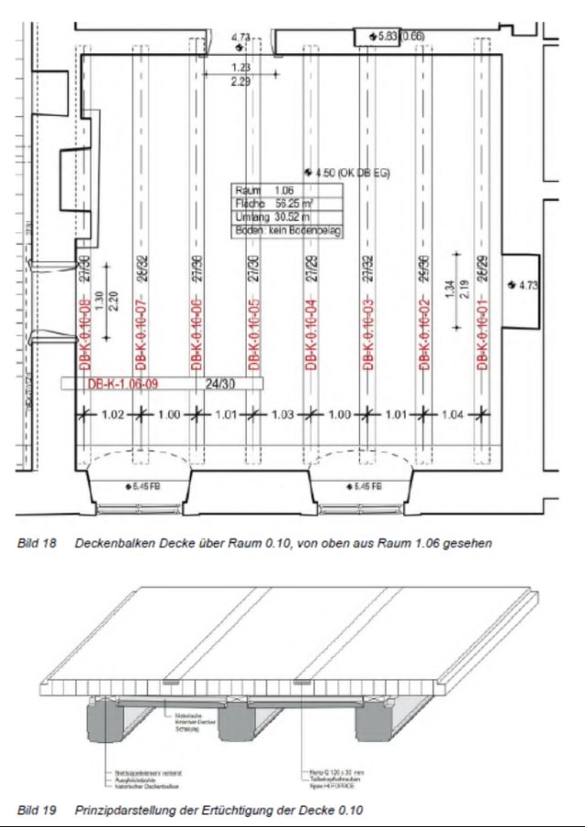 - Herstellung eines ausreichend tragfähigen Balkenauflagers (Carbon-Mauerwerk, Vermeidung von Stahlbeton) und der Ringankerwirkung